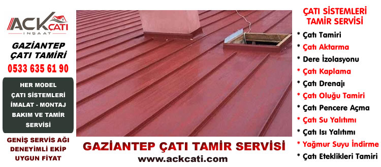 Gaziantep'te çatı sistemleri üzerine hizmet üreten kurumsal firmalar, her türlü çatı çatı tamiratı, su izolasyonu, dere izolasyonu, gizli dere uygulamaları, asma dere imalatı, membran çatı, mantolama işlerini yılların deneyimi ile yapmaktadır.